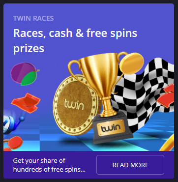 Twin features weekly casino races with extra cash prizes for those who make it to the leaderboard. High rollers and big betters will especially enjoy these races. There are also Daily Drop & Wins with random cash drops on featured slots.